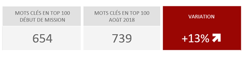 Progression du Nombre de mots clés en Top 100 SEO (comparaison Year To Year)