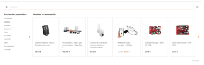 - L'intégration de Doofinder avec filtres dynamiques est également un enjeu primordial. Une barre de recherche dynamique permet de rediriger de manière intelligente l'utilisateur grâce à l'utilisation de filtres, de recommandations intelligentes même en cas de faute de frappe, ou encore de l'historique utilisé pour améliorer le merchandising et comprendre ce que les utilisateurs recherchent en priorité.