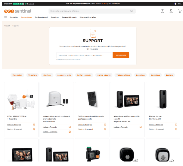 SCS Sentinel propose un catalogue complet de produits techniques, il est donc essentiel pour les clients de pouvoir télécharger la documentation des produits (notices, fiches de réparabilité, déclaration de conformité).